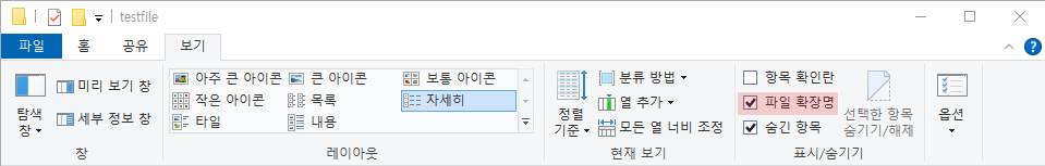 이제 메모장을 만들었으면 해당 메모장의 파일 형식을 txt가 아닌 bat로 변경해주면 된다. txt가 안보일 경우에는 폴더의 상단 부분에 위치해 있는 메뉴인 '보기'를 클릭한 후에, [파일 확장명]의 왼쪽에 체크를 해주면 .txt(확장자)가 나타난다. 그 후에 메모장 파일을 오른쪽 클릭을 하면 이름을 수정하는 버튼이 생기는데(단축키는 M), 그를 눌러서 .txt 부분을 .bat로 변경해주도록 하자.
