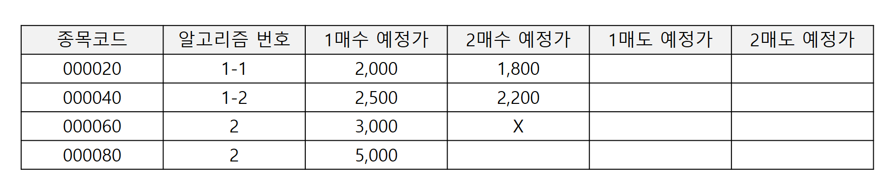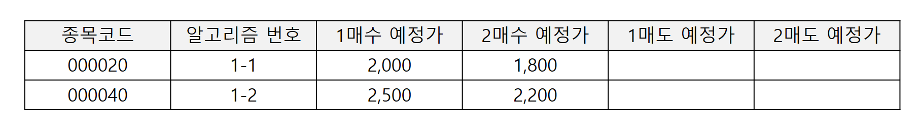 만약 당신의 주가 데이터를 기반으로 위와 같은 데이터를 생성해냈다고 가정해보도록 하자.(물론 알고리즘 번호는 없다고 생각하고 보시길 바란다.) 똑같은 알고리즘에 의해 두 개의 종목이 선정되었으나, 본인이 지나고 나니 첫 번째 종목(000020)에 대해서는 100만원의 비중만 싣고 싶었지만 두 번째 종목(000040)에 대해서는 200만원의 비중을 싣고 싶다는 생각이 들었다고 해보도록 하자. 그렇다면 두 종목을 매수하기 전에 앞서 비중을 달리할 수 있는 그 기준이 되는, 즉 두 종목 간의 차이점을 구분할 수 있는 하나의 데이터를 남기라는 것이다. 단순하게 여러 개의 알고리즘을 쓴다고 해서 수익이 많이 발생하는 것도 아니다.