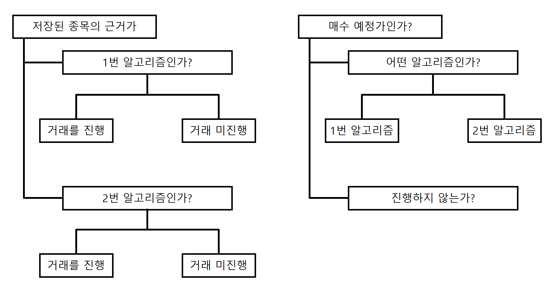 왼쪽 로직 : 첫 번째 종목(000020)과 두 번째 종목(000040)에 대해 알고리즘 여부를 판단