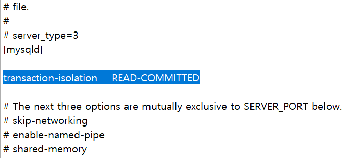 그럼 이참에 그냥 transaction-isolation=READ-COMMITTED를 입력해주도록 하자.