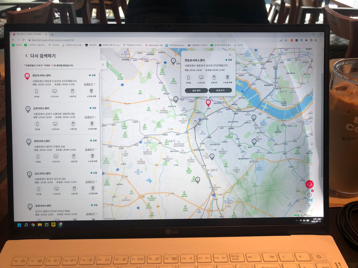 교체 확인을 위해 인터넷 검색 중, 다짜고짜 서비스 센터로 찾아가면 재고가 없어 제품을 맡기고 이틀 정도를 기다려야 할 수도 있다는 내용을 보곤 LG 고객센터에 전화해서 당장 수리 가능한 지점을 찾아달라 요청했음.