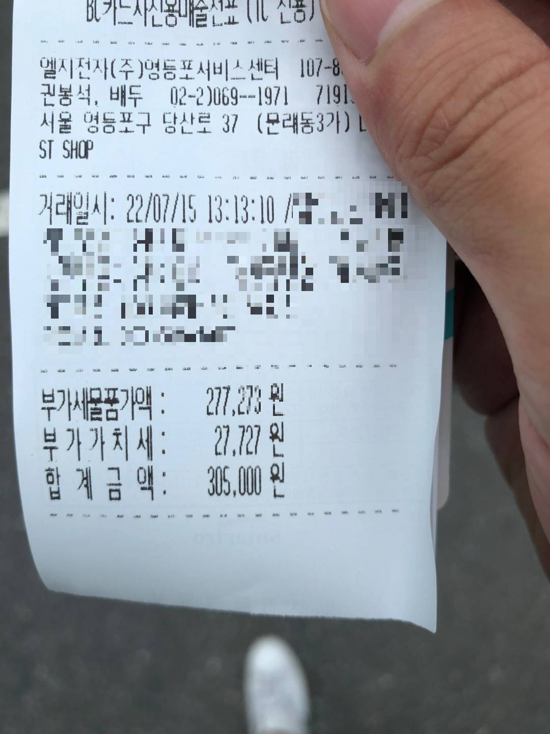 그렇게 305,000원을 결제하고 갖고 나옴.(선결제 시스템은 아니었음.) 자가 수리도 찾아보니 액정 비용만 20만원 정도면 되는 것 같음.. 직접 그램 뜯다가 겉에 케이스도 아작나면 그땐 진짜 큰 일이 날까봐 그냥 맡겼는데... 잘한 것 같기도 하고...