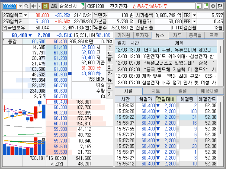 - self.kospi_price_range(self, price) : 전달받은 전일종가를 기준으로 코스피의 호가가격단위를 반환