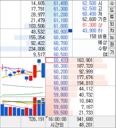 그 데이터를 비교해본 결과는 다음과 같다. 삼성전자의 경우 코스피에 상장된 종목으로서 호가가격단위가 50원인데, 실제 시장에서의 하한가는 43,900원임을 확인할 수 있다. 다시 말해, 실제 시장에서 계산되는 상하한가 데이터는 우리가 갖고 있는 이론과 맞지 않다거나, 추가적으로 적용되는 데이터가 있다는 것을 의미한다.
