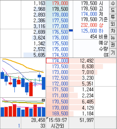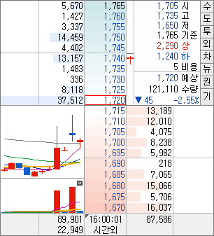 위의 호가 화면을 보면 전일 종가가 1,765원인데 하한가는 1,240원으로 표시되어 있다. 이는 기존의 가격제한폭인 529.5원을 호가가격단위 미만 절사를 통해 가격제한폭을 525원으로 만들어주면 된다.