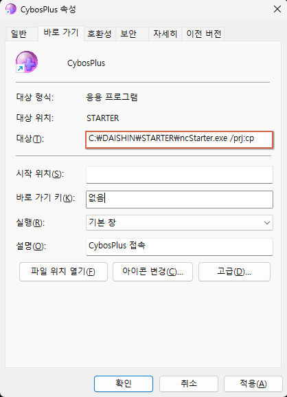 C:\DAISHIN\STARTER\ncStarter.exe /prj:cp
