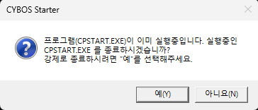 그렇다면 우리는 왜 서버와 접속이 되어 있는지 여부를 확인한 후에 로그인을 시도해야 할까 ? 이에 대한 답은 간단하게도 접속되어 있는 상황에서 재접속을 시도해보면 된다. 아래와 같은 오류를 직면할 수 있을 것이다. 우리가 구현하고자 하는 기능이 기본적으로 자동 매매 프로그램임에도 불구하고 아래와 같은 팝업창이 떴을 때 우리가 직접 "예" 또는 "아니오"를 클릭해서 팝업창을 꺼주는 것보다는 사전에 서버와 연결되어 있는지를 확인한 후에 연결되어 있지 않다면 로그인을 시도하도록 하는 것이 합리적이기 때문이다.