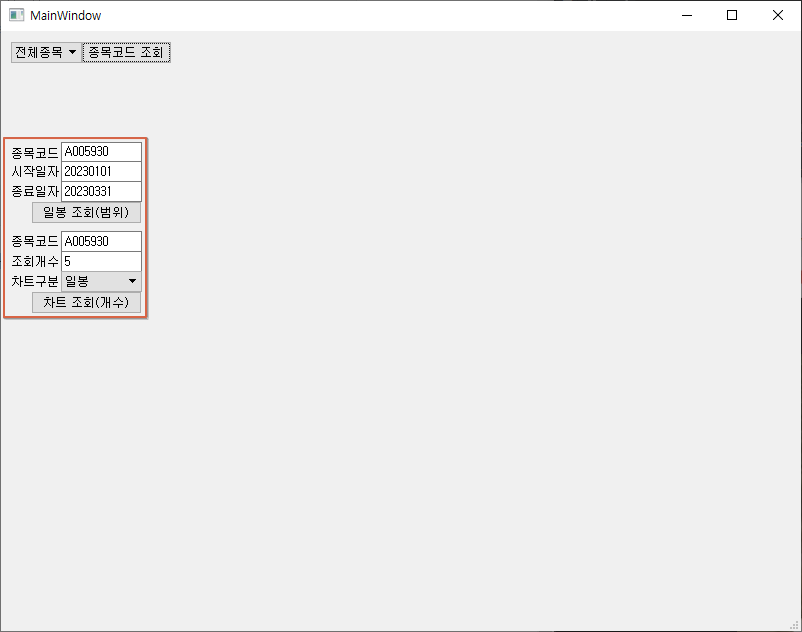이제 프로그램을 다시 실행시켜서 동일하게 조회한 후, 결과 데이터를 확인해보도록 하자. 결론부터 말하자면, 이제부터는 차트 데이터가 정상적으로 조회될 것이다.