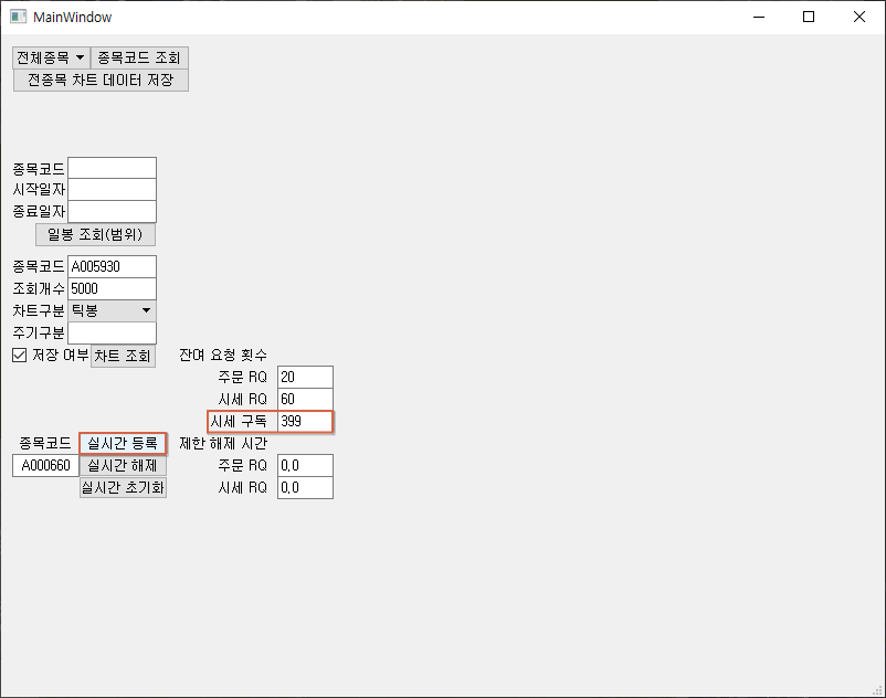 실시간 등록 종목의 잔여 횟수 GUI에 표기하기