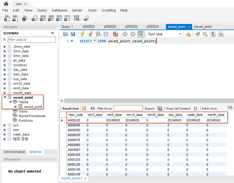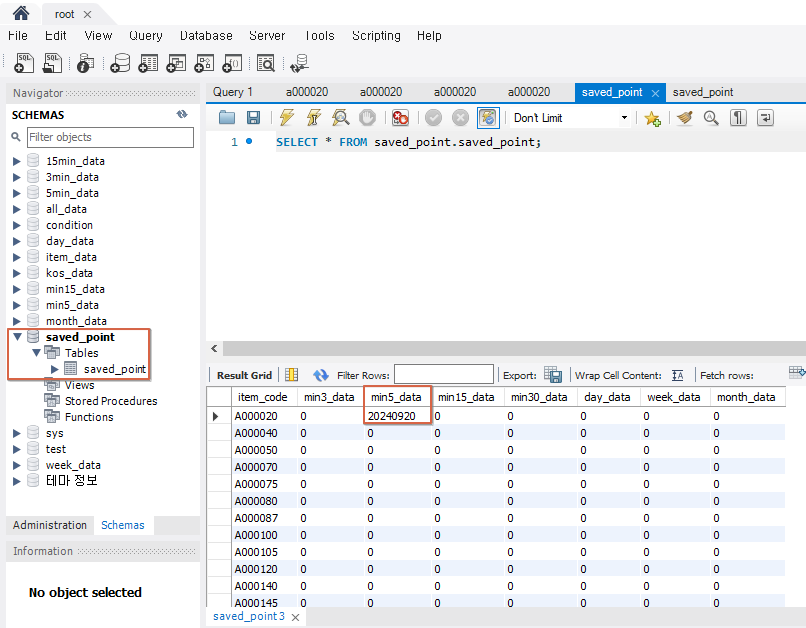 저장되어 있는 5분봉 차트 데이터 조회일자:20240920