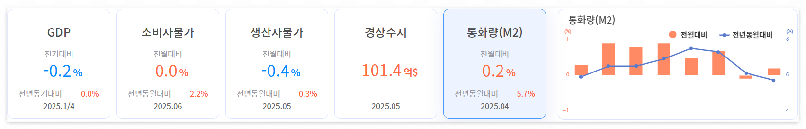 - M0(본원통화): 한국은행이 시중에 공급한 현금의 규모로 지금 당장 사용할 수 있는 돈