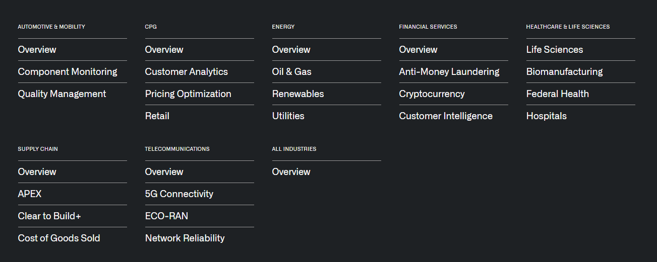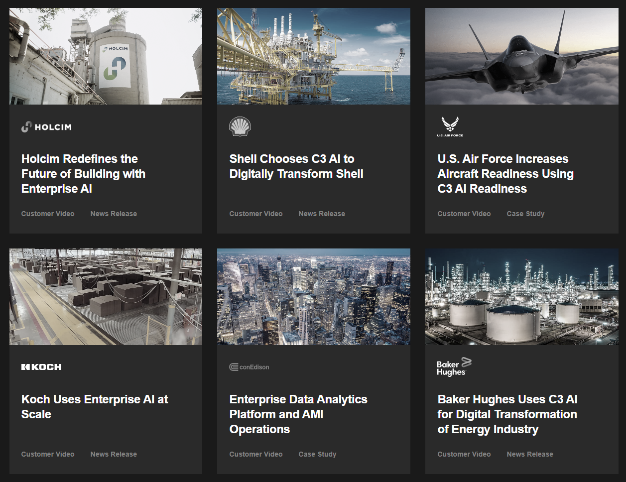 AI를 응용한 소프트웨어를 제공하는 일명 1️⃣ 엔터프라이즈 솔루션 산업에 속하는 대표적인 미국의 사례가 바로 팔란티어 테크이다. 팔란티어는 미국의 국방 행정에 AI를 적용·융합하여 미국 국방 시스템의 효율성을 증대시킨 기업으로, 한 마디로 정리하면 AI 방산 기업이다. 이외에도 C3.ai 역시 미국의 대표적인 AI 응용 소프트웨어 기업으로, 기업 내부의 데이터를 수집하고 분석할 수 있는 AI 프로그램을 만들어 기업에 공급해주고 이를 바탕으로 또 다른 효율성을 창출하도록 하는 서비스를 제공한다. 일례로 미국 공군 측에 AI 시스템을 통해 전투기의 부품에 대한 사용 환경 및 사용 시간에 따른 수리 이력 같은 정보를 바탕으로 발생 가능한 문제점을 시기별로 예측함으로써 예상 수명을 계산하여 발생 가능한 사고를 미연에 방지하는 등의 사업을 진행하고 있다.