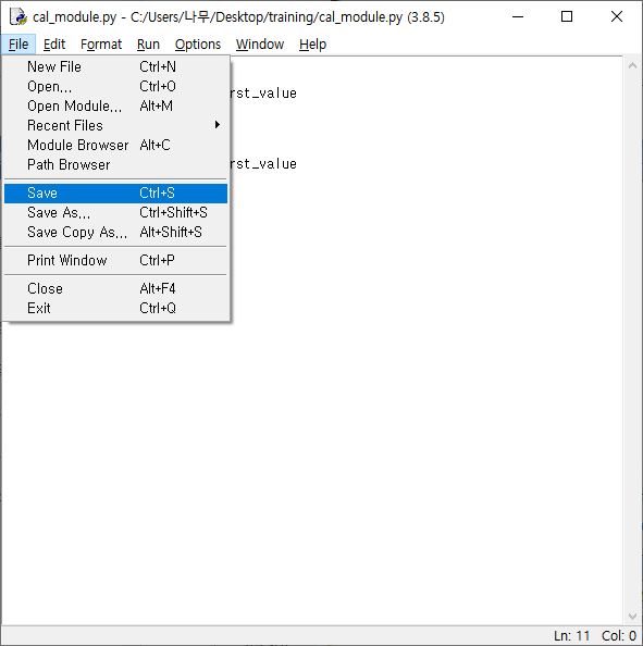 함수를 입력했다면 원하는 이름으로 저장을 해주도록 하자. 나는 'cal_module'로 저장함