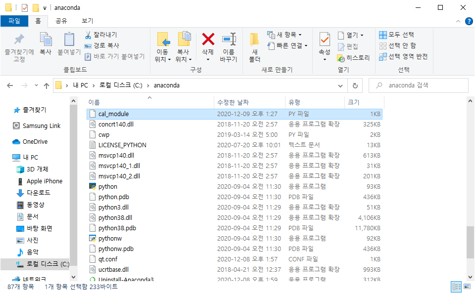 ○ 저장 경로 : C:/Anaconda3 [이 경우 코드의 저장경로는 C:/Anaconda3:/cal_module.py가 됩니다.]