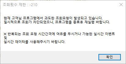 제한기준이 시장상황과 서버상황에따라 유동적인 이유로 이에 차단메세지를 수신하신 고객님(Client)들께 공통적인 가이드를 제시하는데 시간이 지체되었습니다.